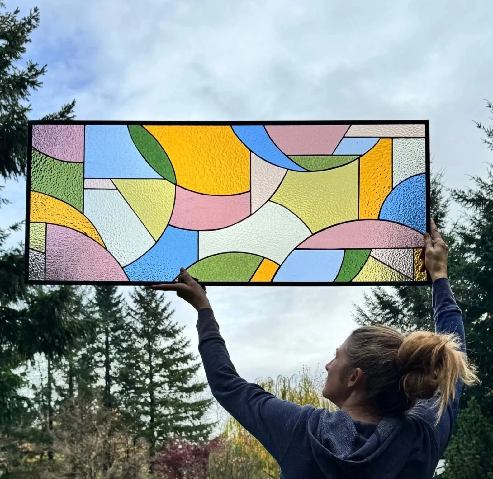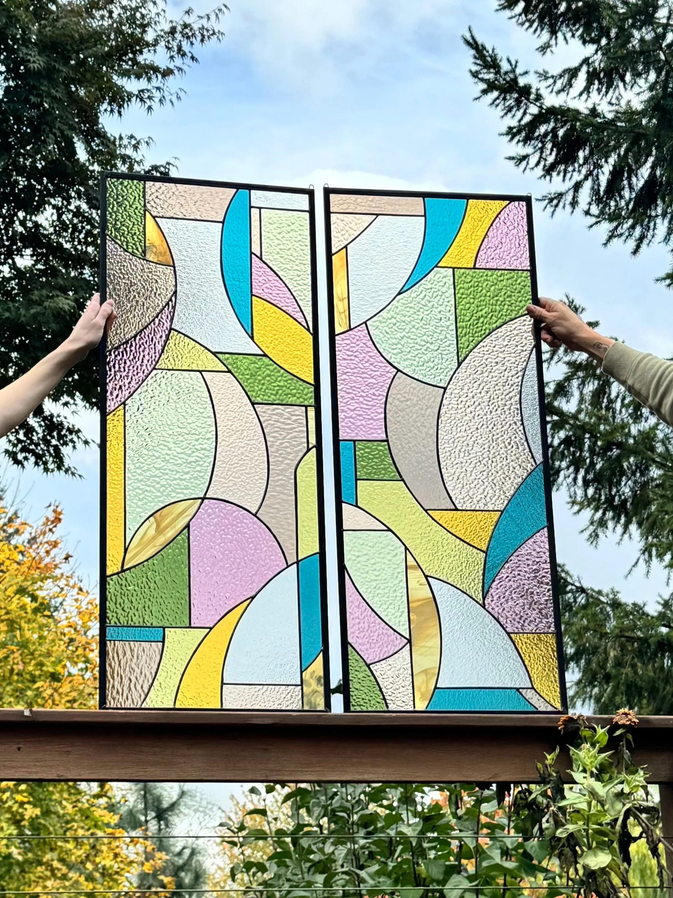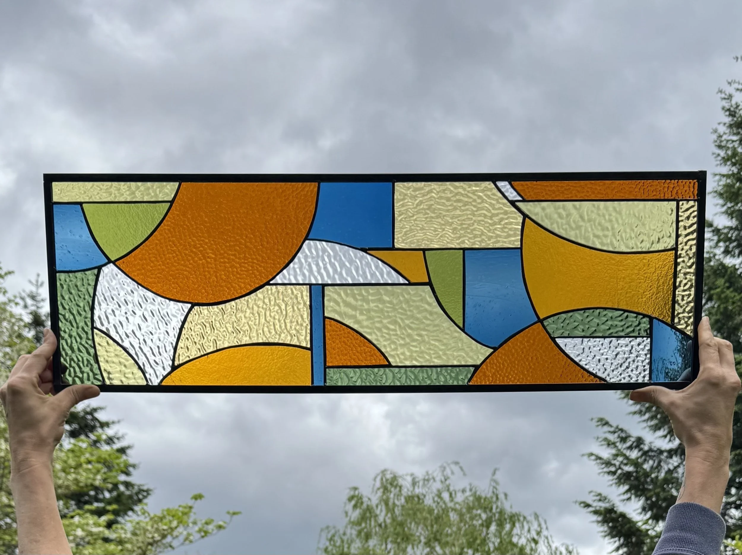 Contemporary stained glass made in the Pacific Northwest.