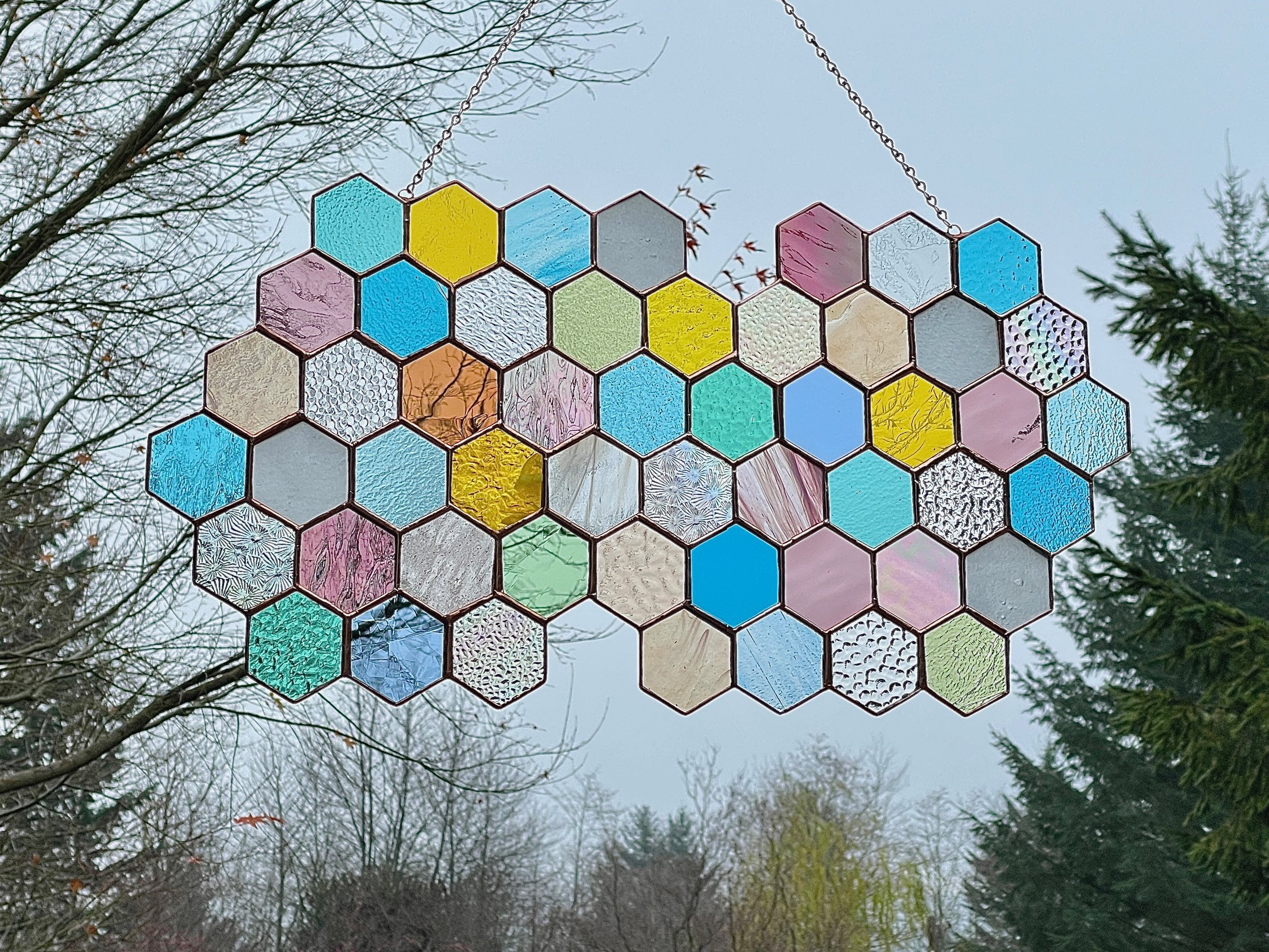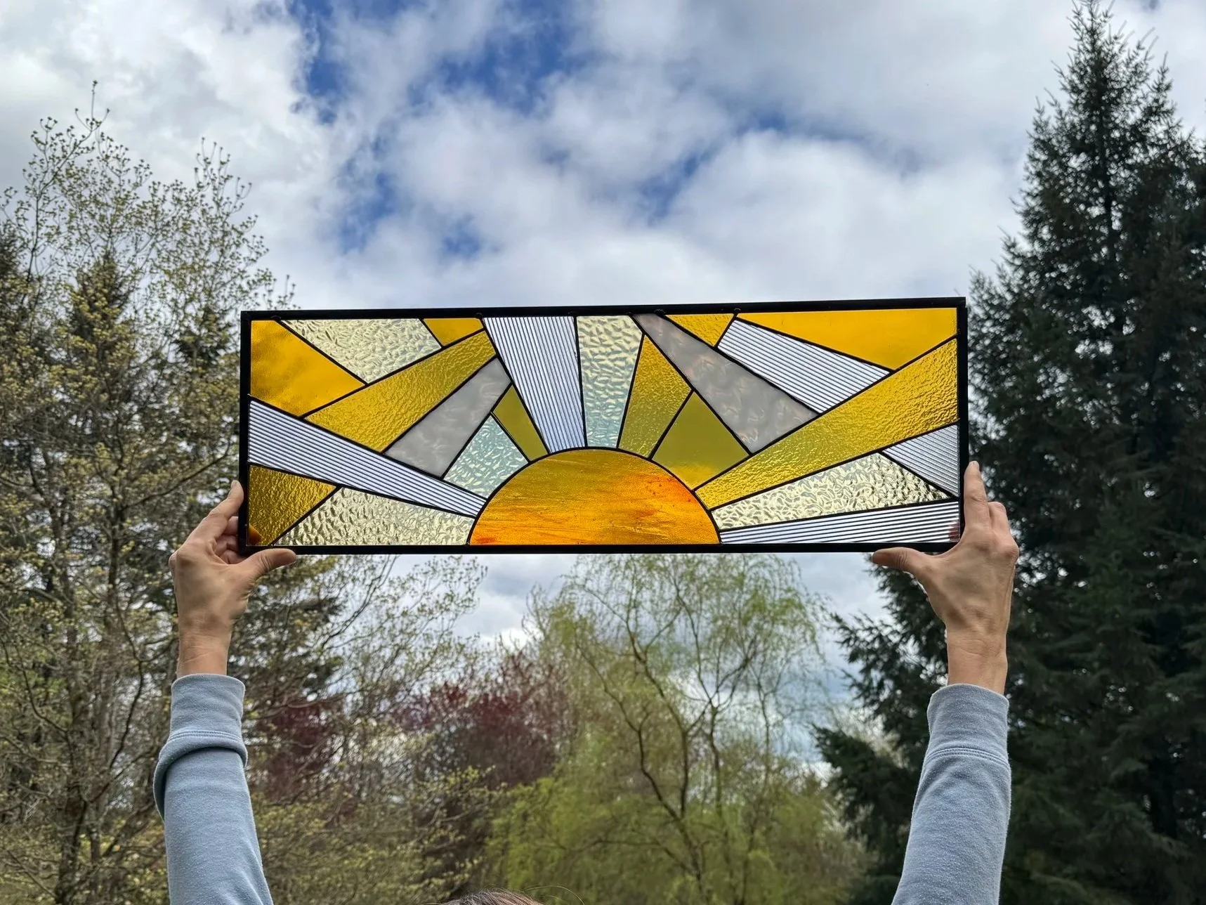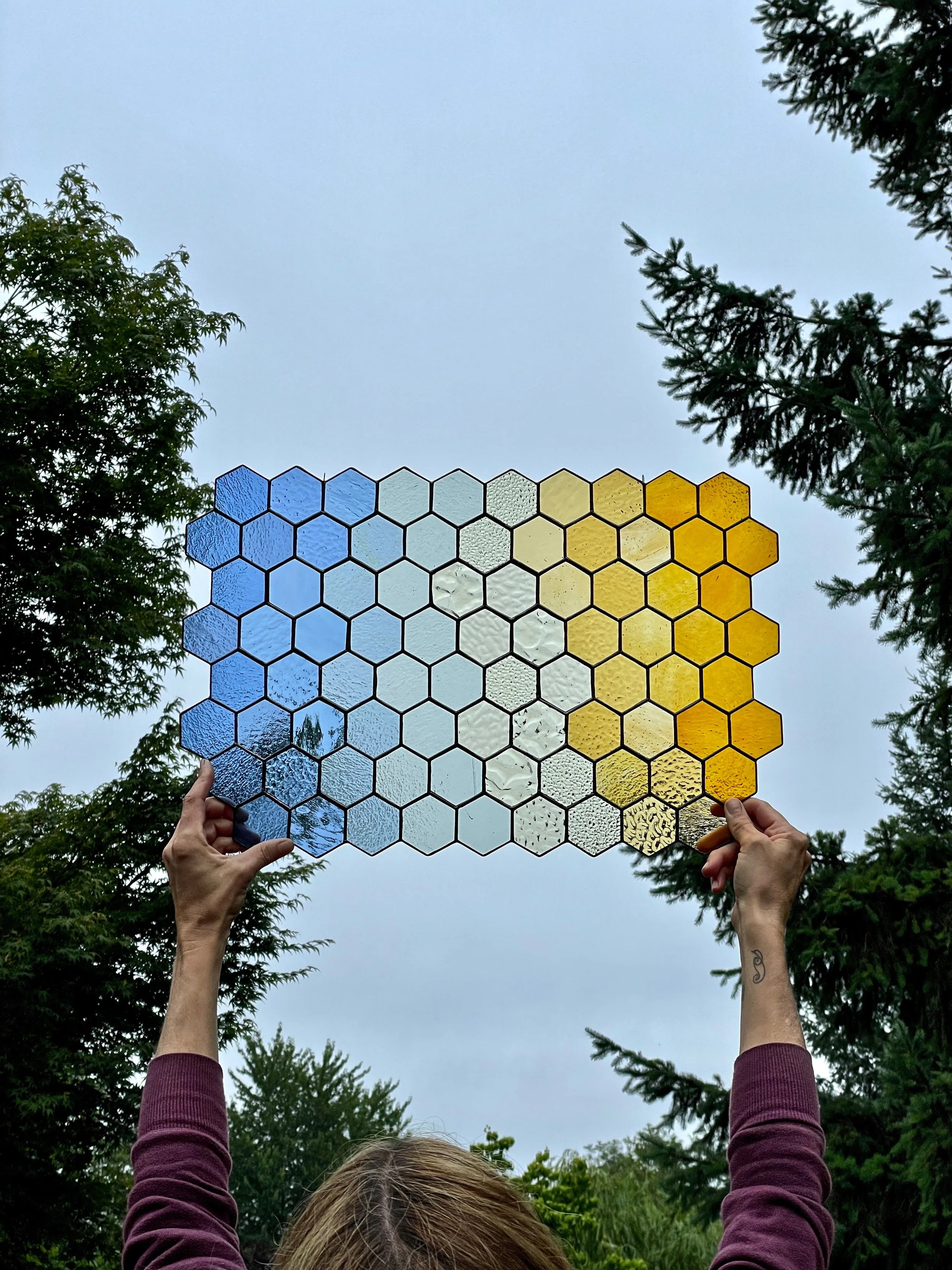 Contemporary stained glass made in the Pacific Northwest.