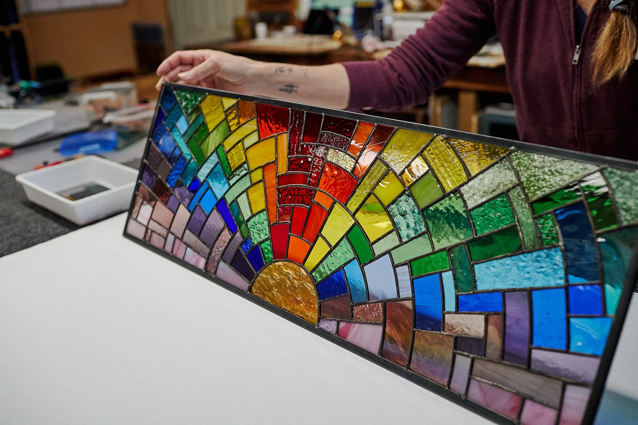Stained glass instruction ranges from foundational skills to advanced techniques. View the calendar for upcoming workshops or reach out to schedule a private class.